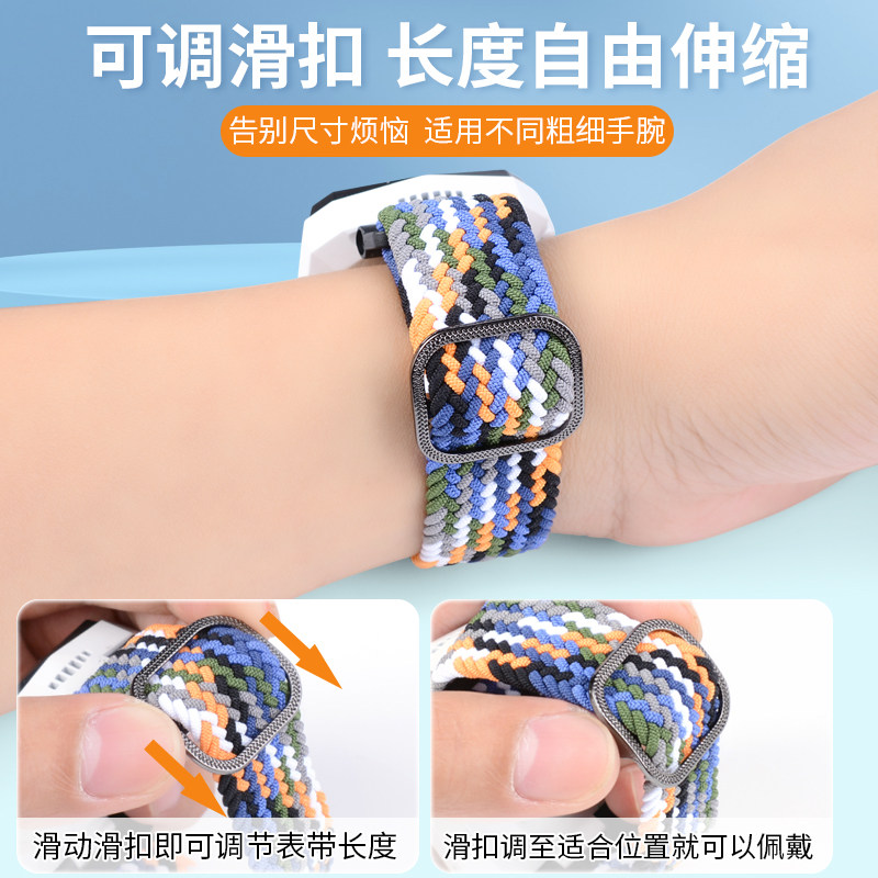 配件 AL10透气可调节弹力替换表带钢化膜保护壳夏季 适用华为儿童电话手表3X表带编织款 手表链尼龙回环腕带ALX