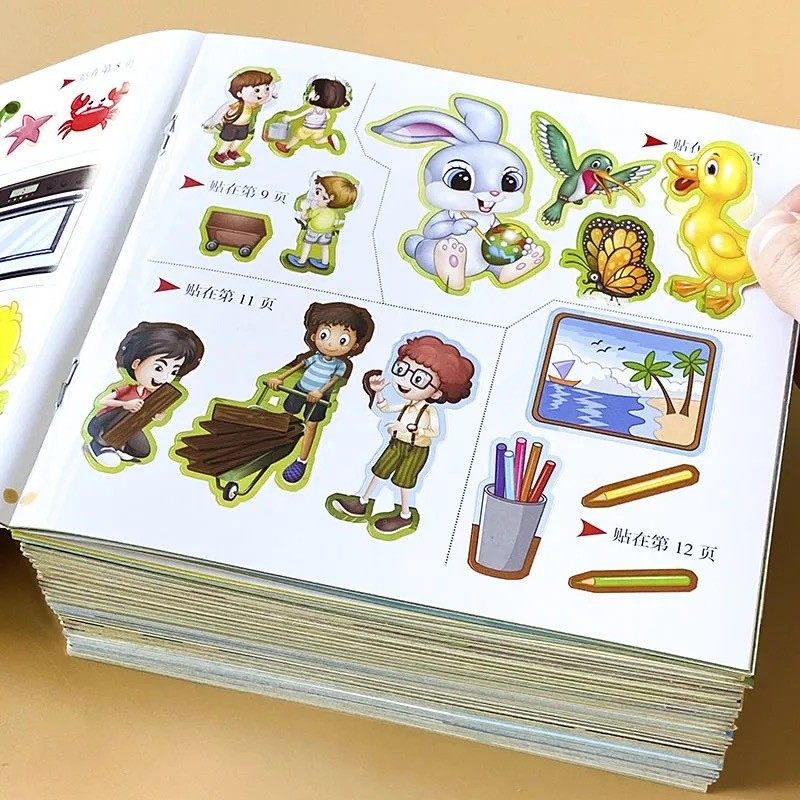 6岁宝宝1卡通贴贴画粘贴纸益智玩具贴画书 儿童专注力贴纸书0