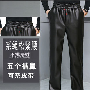 子 防水防风春夏加绒加厚工作保暖摩托车皮裤 皮裤 男宽松高腰春秋季