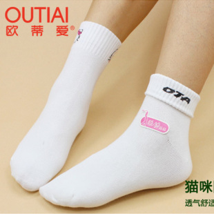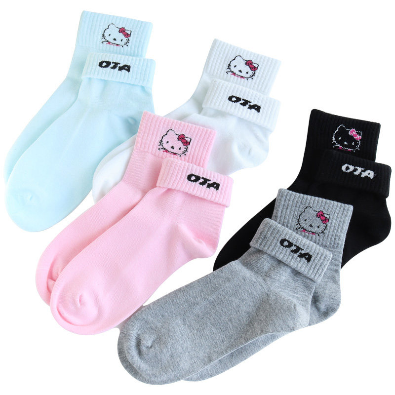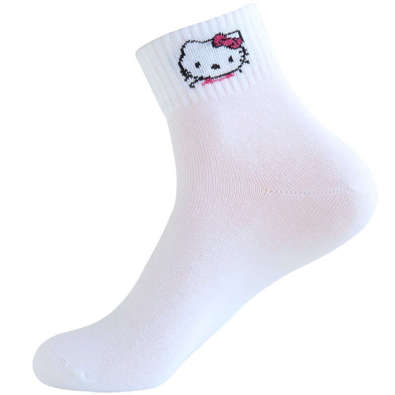 欧蒂爱纯棉袜子女秋冬厚款 白色学生袜中筒袜凯蒂猫女袜防臭袜无骨