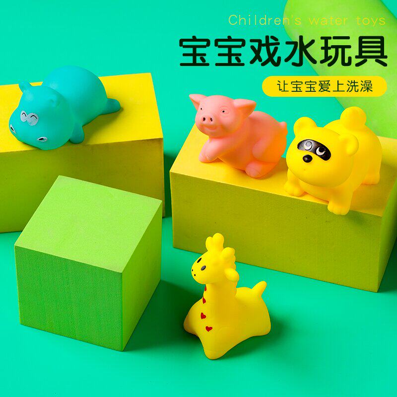 儿童宝宝洗澡卡通动物婴幼儿捏捏叫响小鸭小猪小狗长颈鹿青蛙玩具