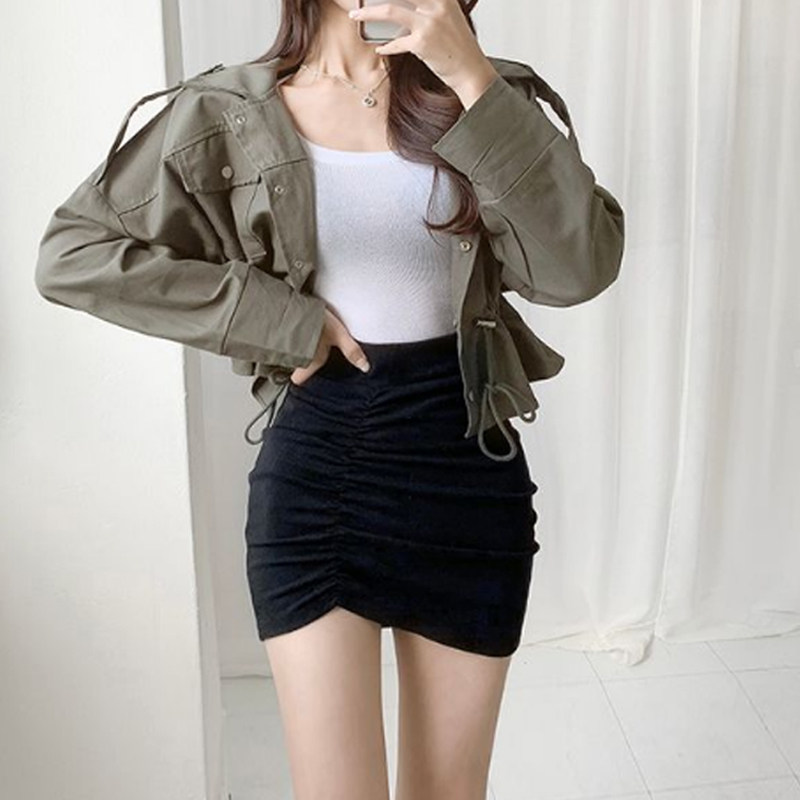 黑色短裙女夏半身裙韩版 高腰紧身弹力性感褶皱包臀不规则一步裹裙