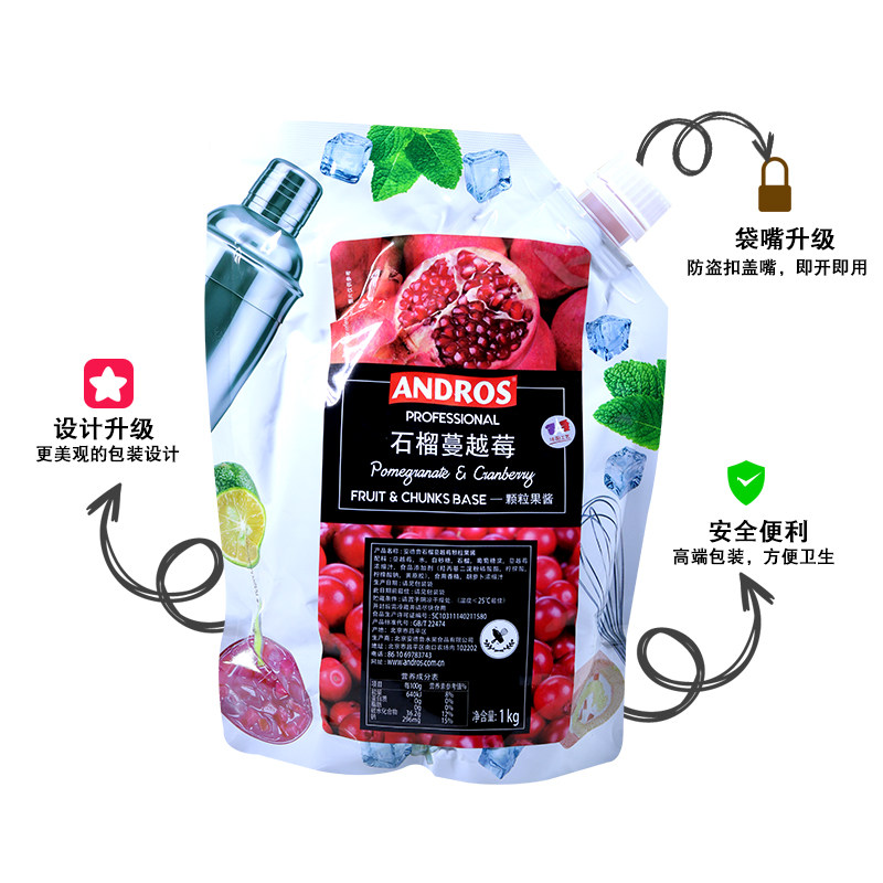 安德鲁石榴蔓越莓颗粒果酱1kg袋装 水果茶奶茶饮品烘焙调味酱