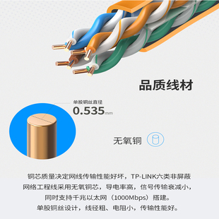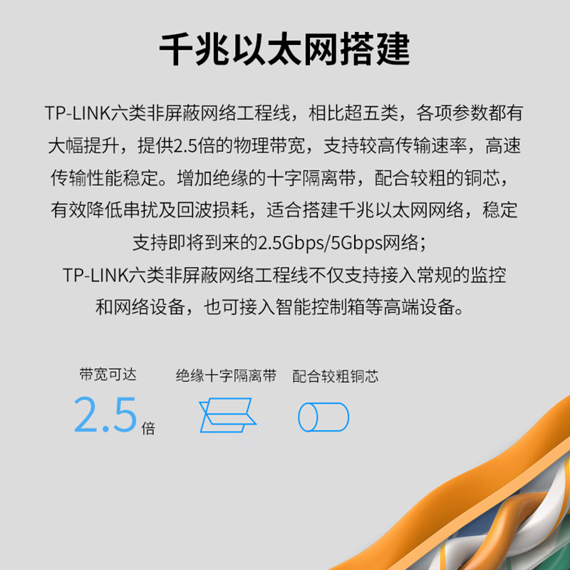 橙可选 0.53mm线径 EC6 六类非屏蔽网络工程线100米 305米 305 100 千兆以太网网线8芯无氧铜 蓝 LINK