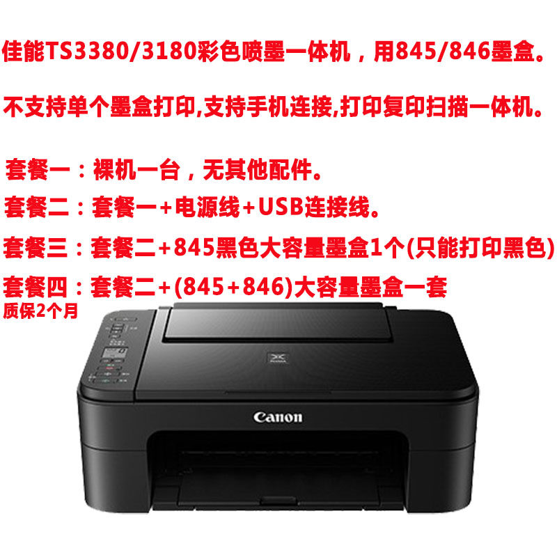 佳能二手打印机TS3180 TS3380彩色打印无线一体机家用办公可加墨