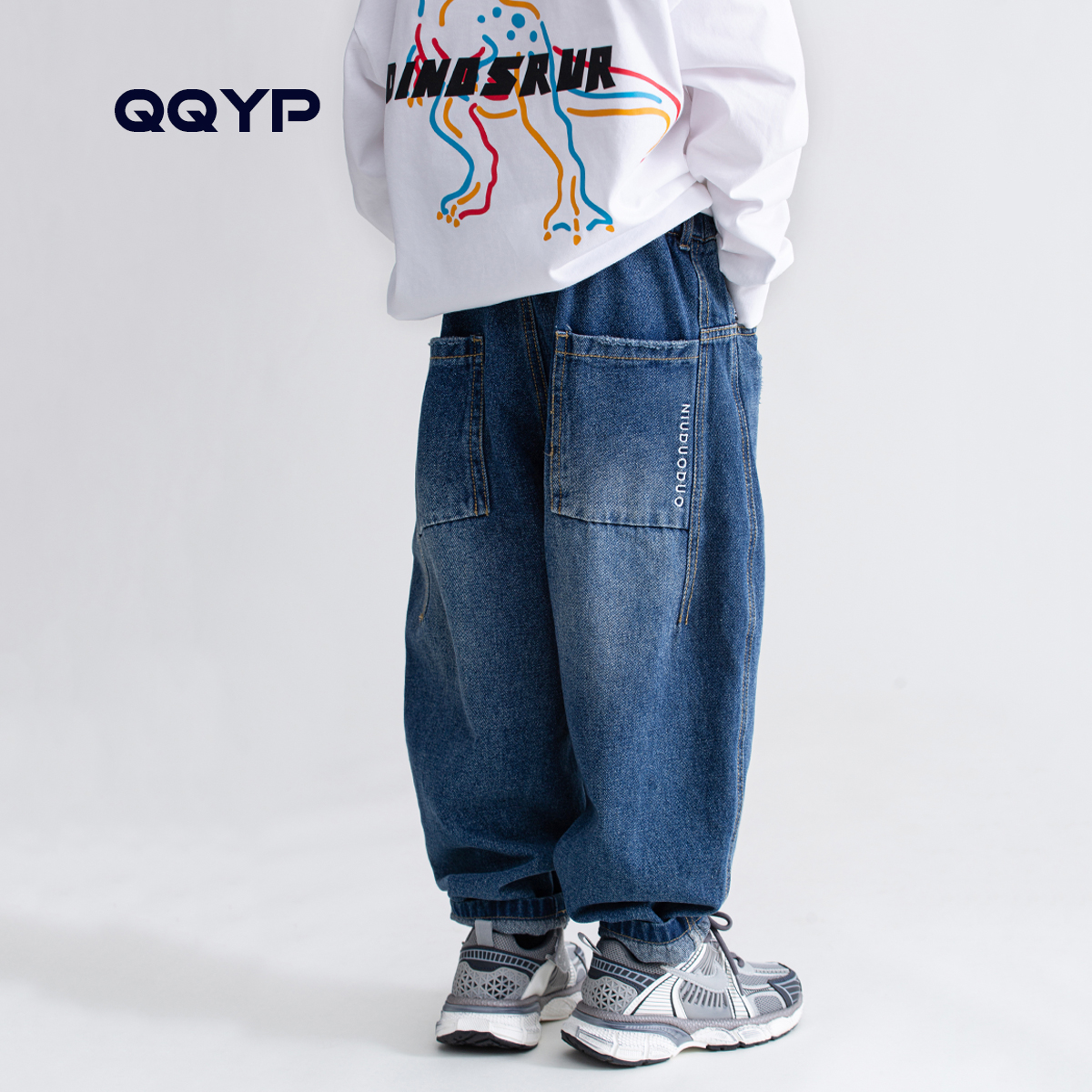 儿童韩版 直筒裤 炸街裤 男童牛仔裤 老爹裤 新款 子宽松长裤 2025春秋装