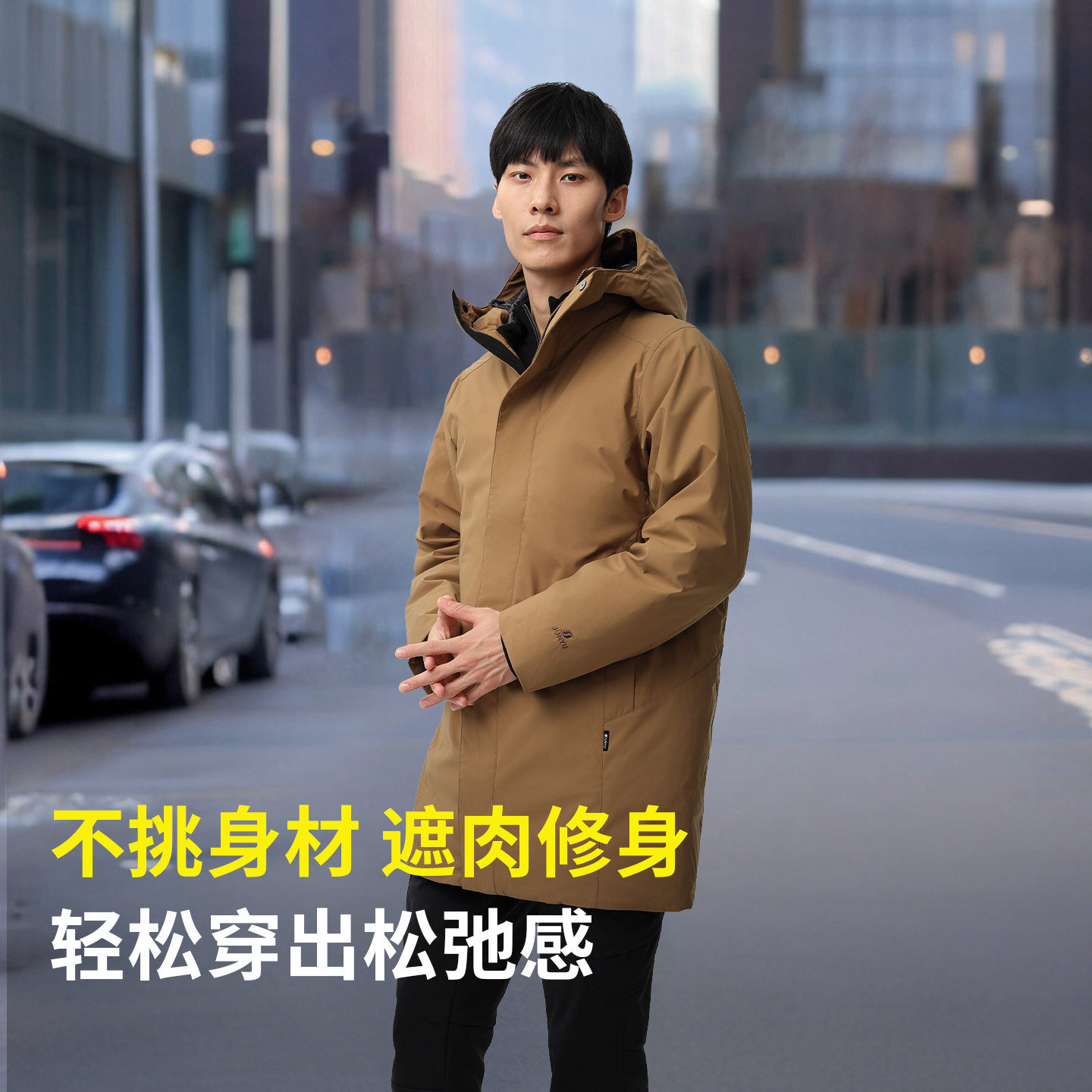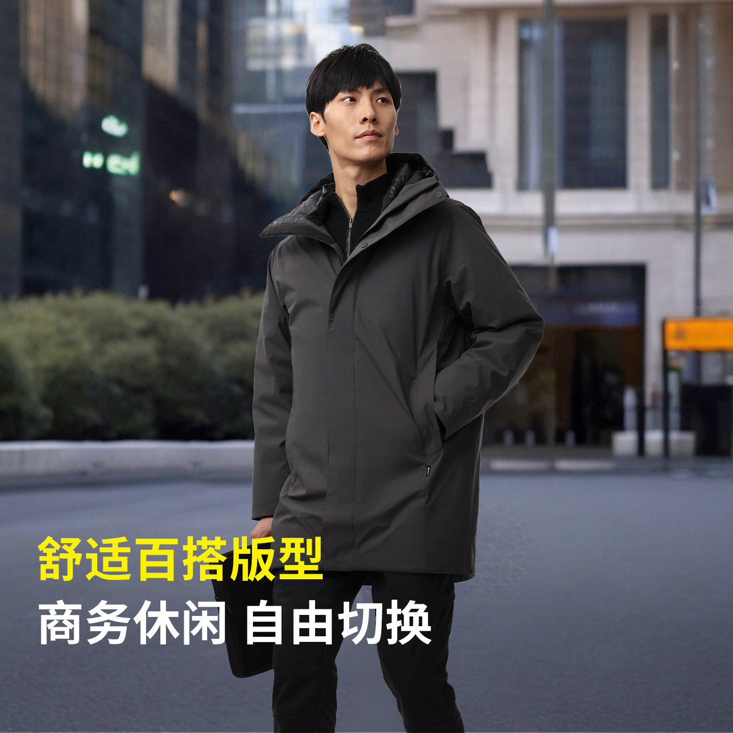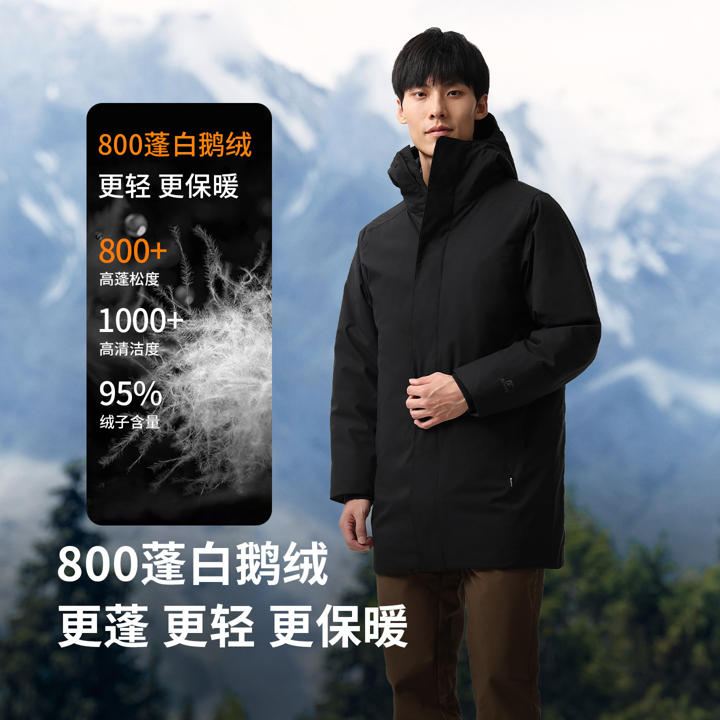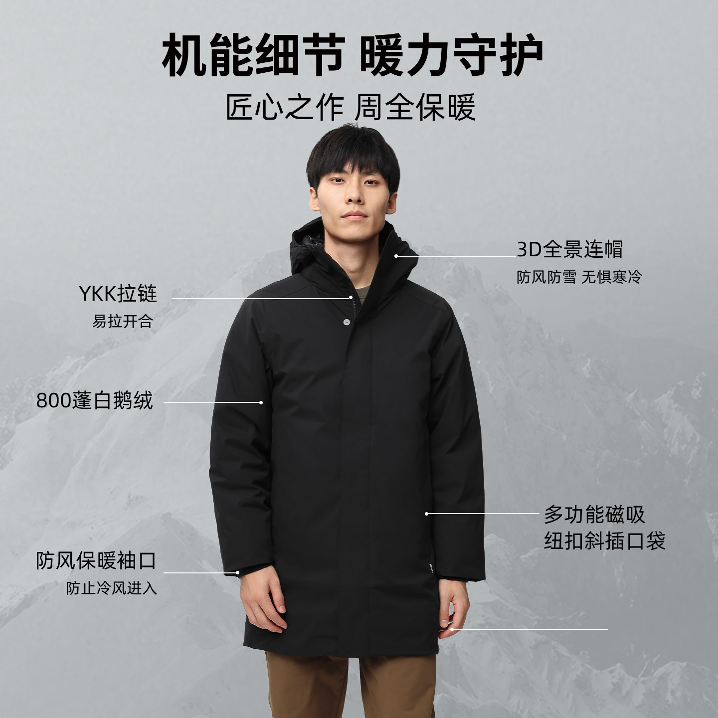 黑冰冬季 保暖抗寒加长加厚连帽鹅绒羽绒服男过膝大衣8575