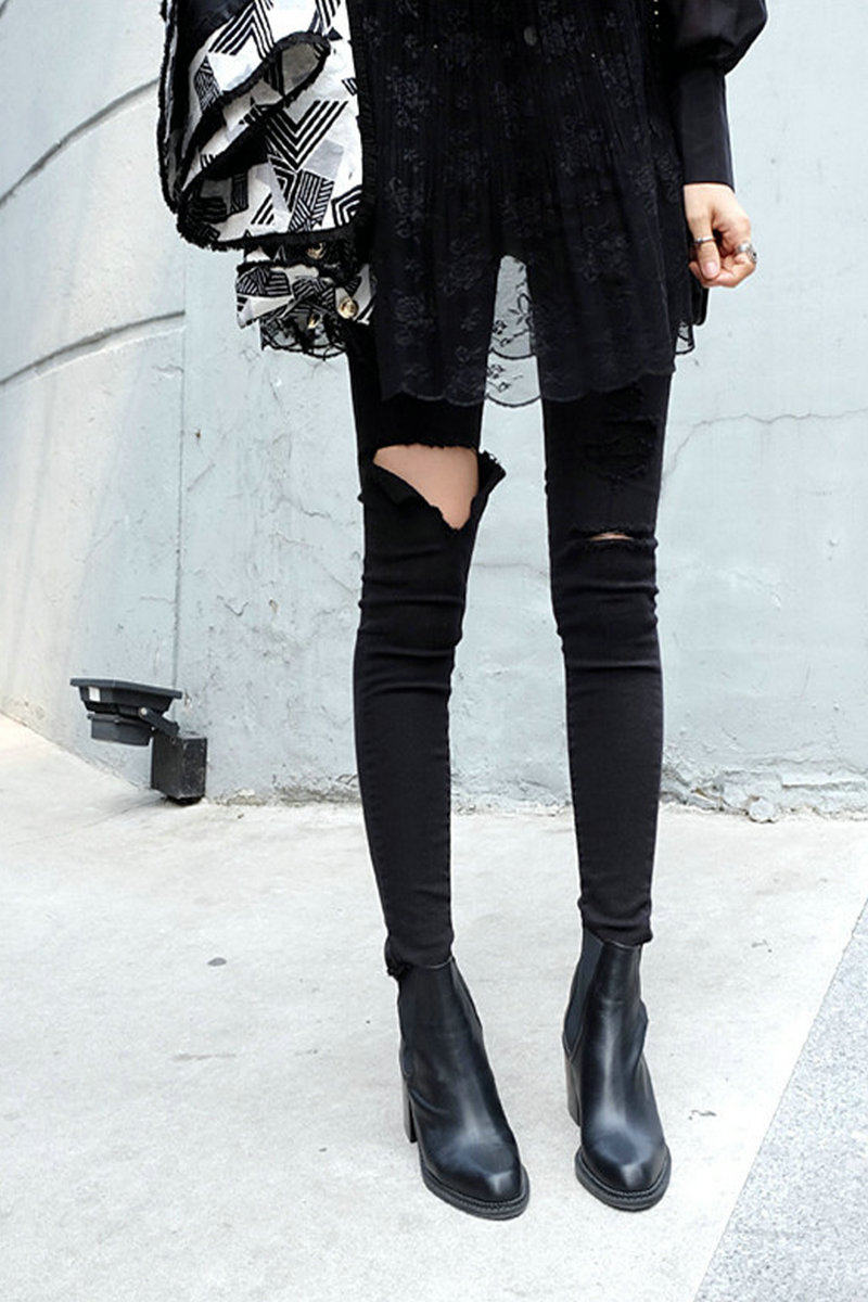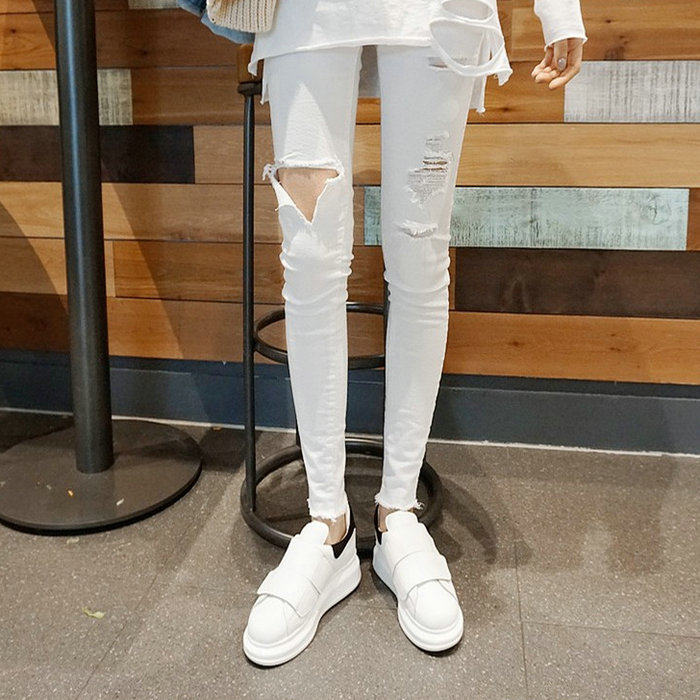 女夏季 小脚裤 薄款 高腰紧身弹力九分裤 2025年新款 小个子破洞牛仔裤