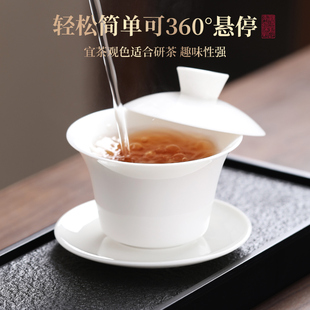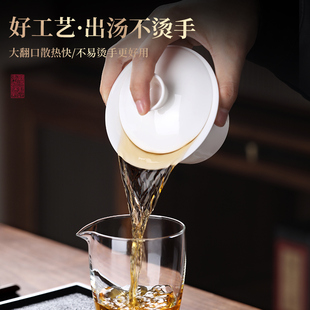羊脂玉盖碗茶杯陶瓷单个高端大号泡茶功夫三才碗德化白瓷茶碗茶具