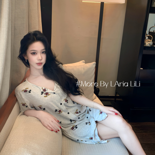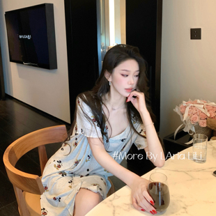 睡衣家居服女生夏天性感连衣裙 可爱短袖 芬腾睡裙女士夏季 纯棉薄款