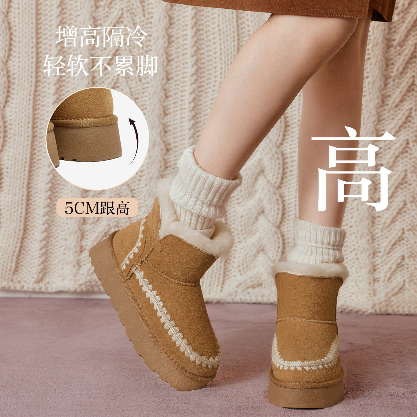 东北雪地靴厚底增高棉鞋 骆驼女鞋 加绒加厚短靴女款 香菇来了