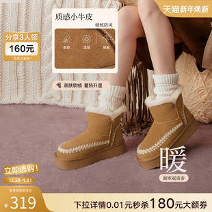 棉鞋 防水皮面平底时尚 冬雪地靴女短筒加绒加厚周冬雨同款 2025新款