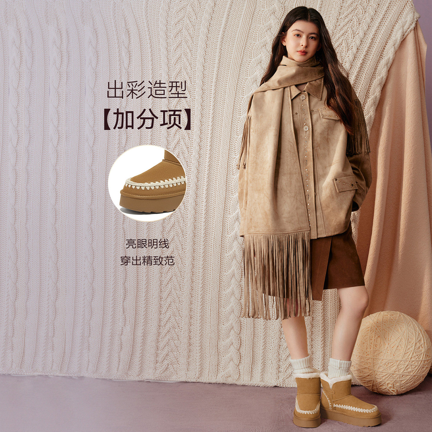 雪地靴毛毛鞋 骆驼x奈娃联名勃肯鞋 加绒保暖厚底时尚 新款 2025冬季
