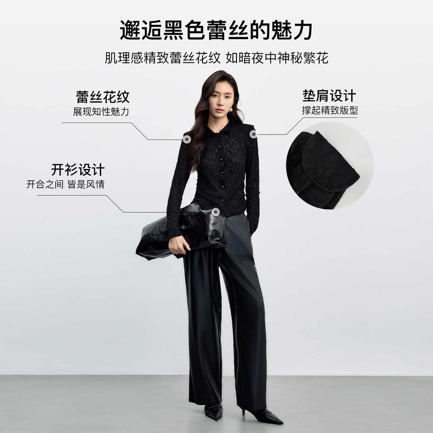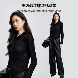 气质修身 伊纳芙高级感暗纹肌理长袖 时尚 女2025秋新款 透气上衣 衬衫