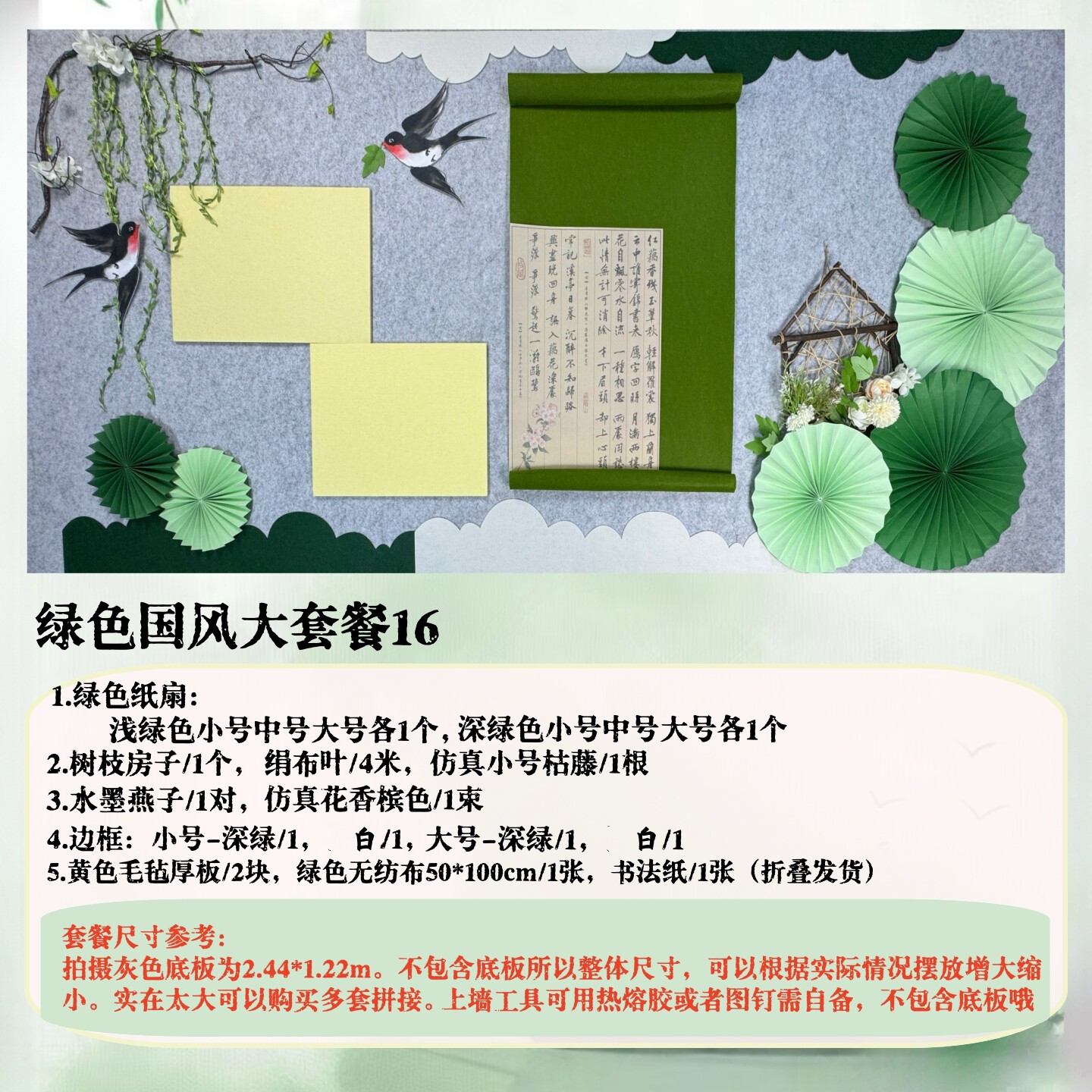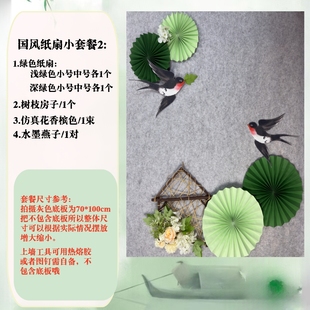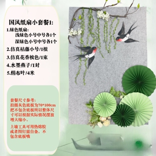 幼儿园小学墙面绿色环创贴壁饰新中式 春天绿色主题黑板背景墙贴