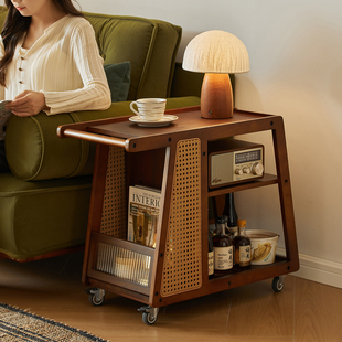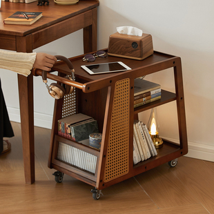 中古客厅木质移动零食小推车家用餐车带桌板阳台茶几床头收纳桌子