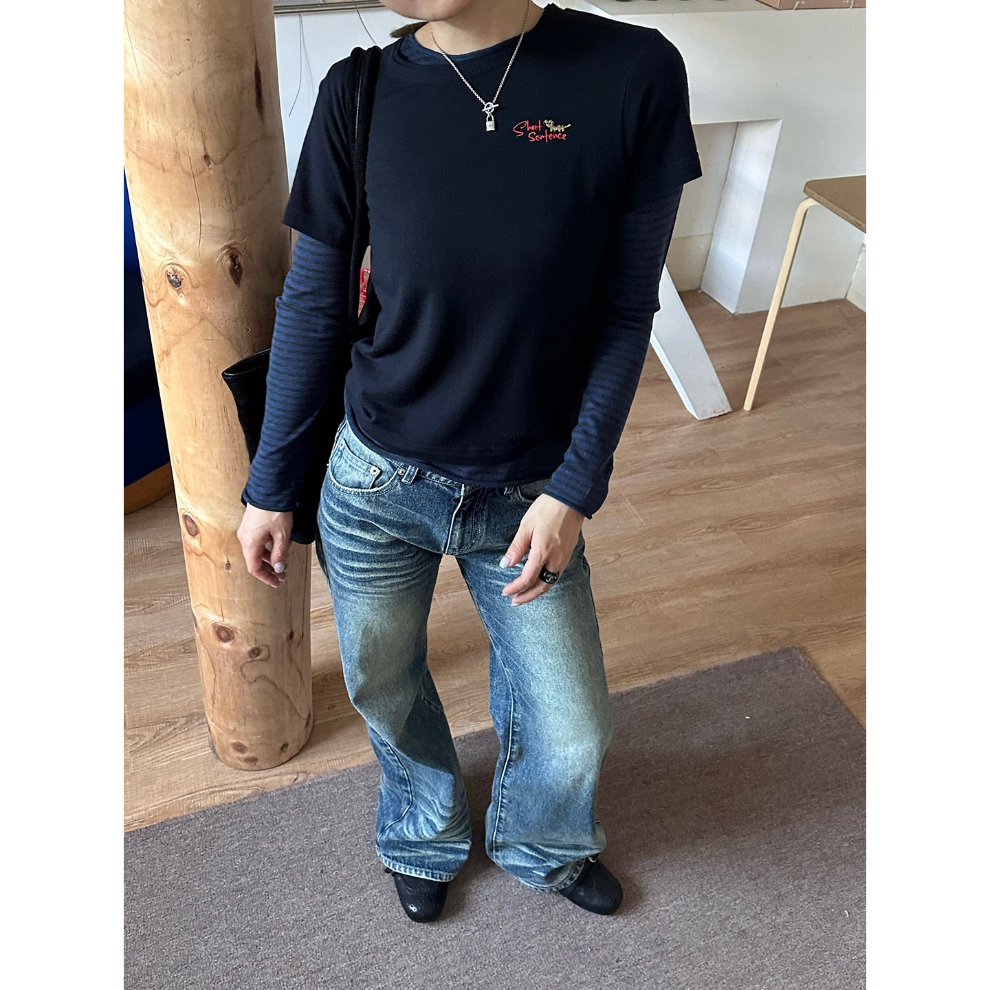 2025年休闲气质上衣打底衫 t恤女秋装 潮 100%纯棉长袖 外贸出口反季