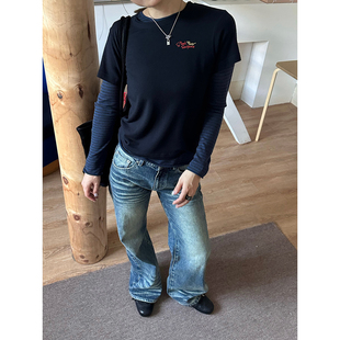 马登黑白色基础款 t恤宽松内搭卫衣上衣女秋 针织纯棉打底磨毛长袖