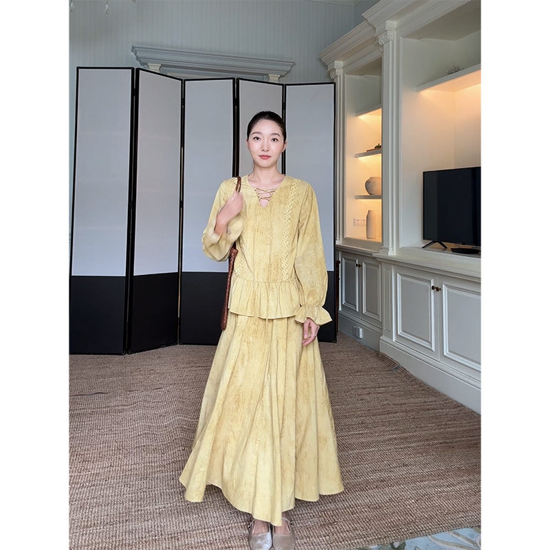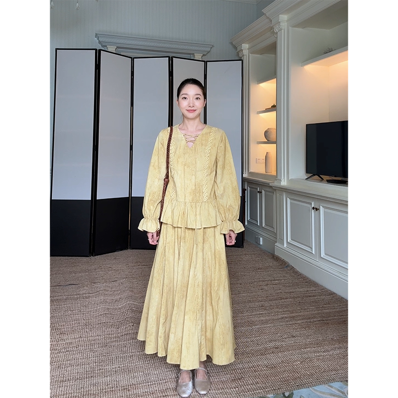早秋上衣伞摆半身裙 荷叶边绑带宽松显瘦衬衫 现货售完不补