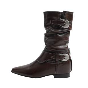 真皮 马丁靴 骄屿金属扣堆堆靴粗跟新疆棕色西部牛仔短靴2025新款