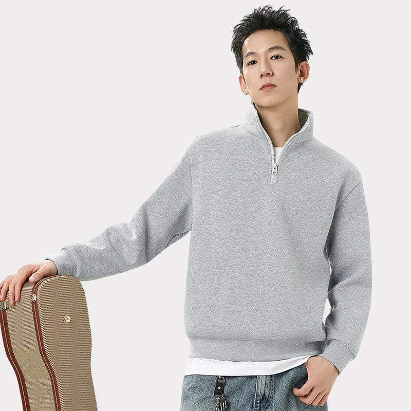 雪中飞半拉链卫衣男初秋2025新款 复古上衣学生休闲灰色外套PC 美式