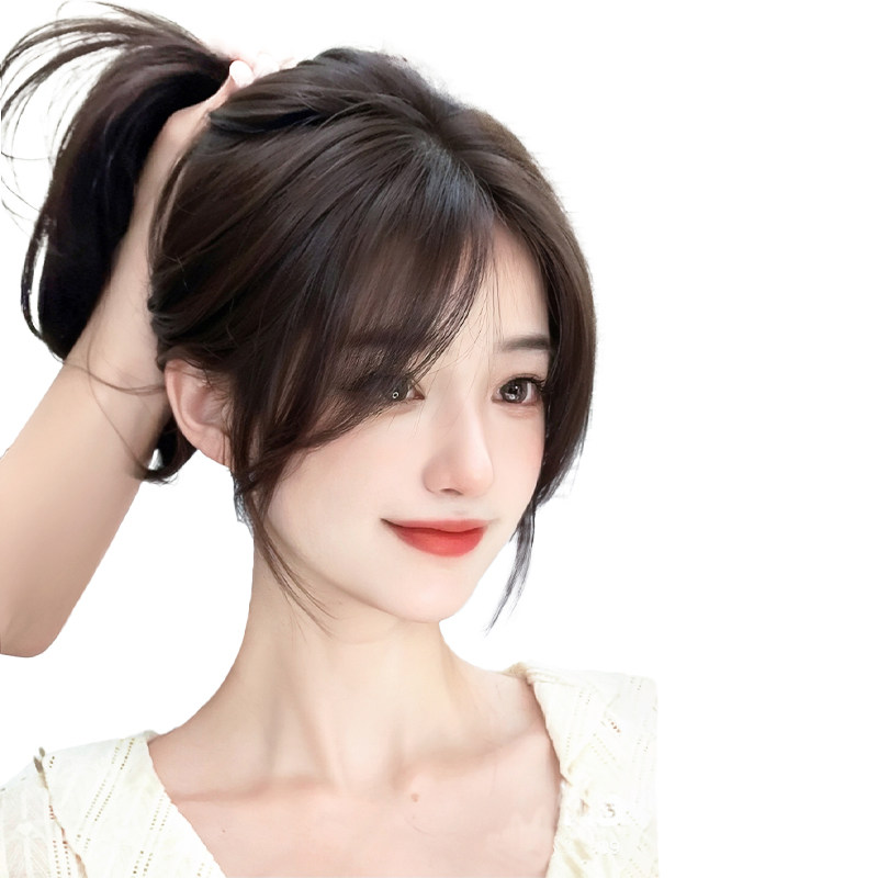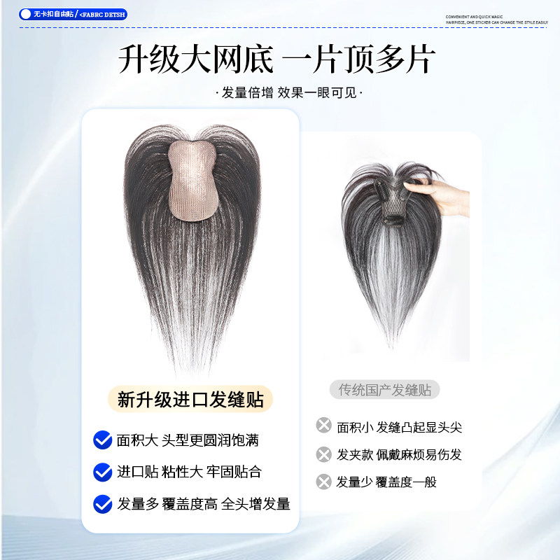 无需发卡魔术贴假发女片头顶补发蓬松颅顶自然前额真发刘海补发片