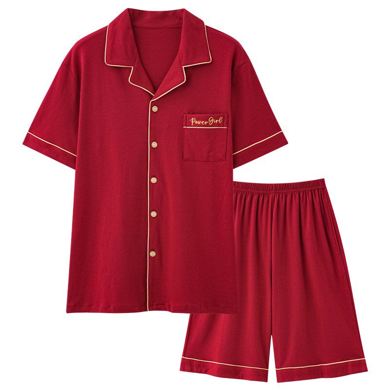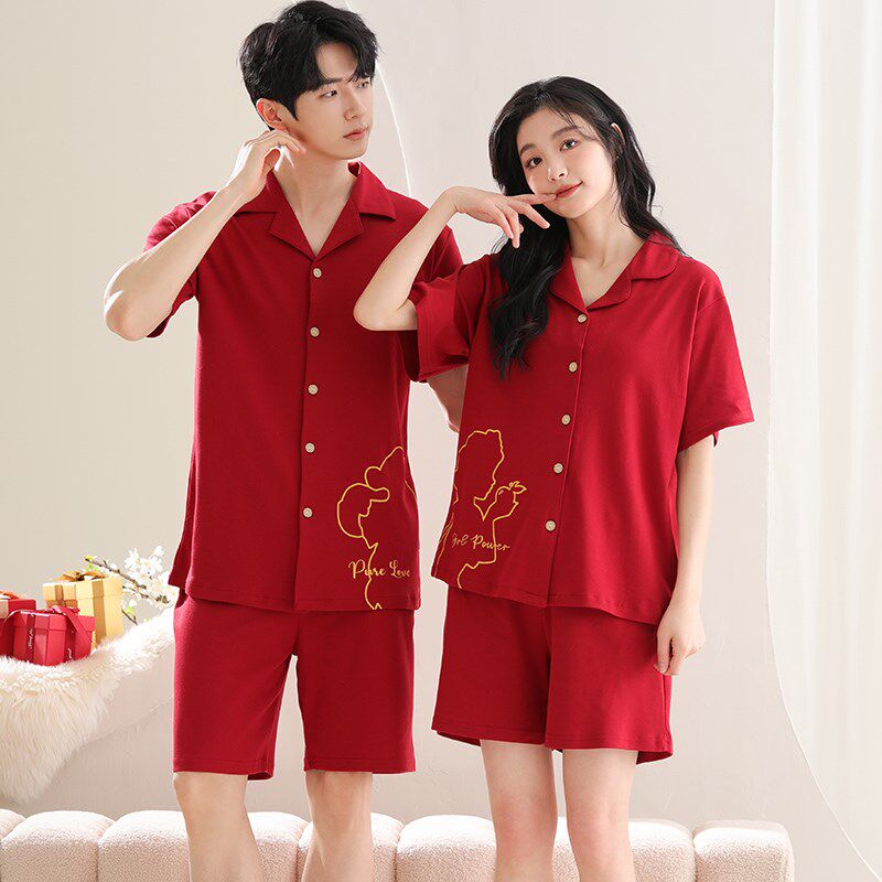 男女家居服套装 情侣睡衣夏季 红色新婚结婚本命年大码 短裤 纯棉短袖