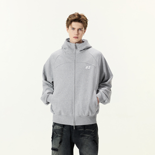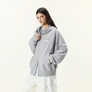 宽松慵懒风双拉链开衫 款 连帽卫衣外套女秋季 橘子树在哪儿灰色短款