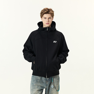 黑色帽衫 Jeep吉普男士 衣服冬装 连帽加厚秋冬外套上衣新款 卫衣男款