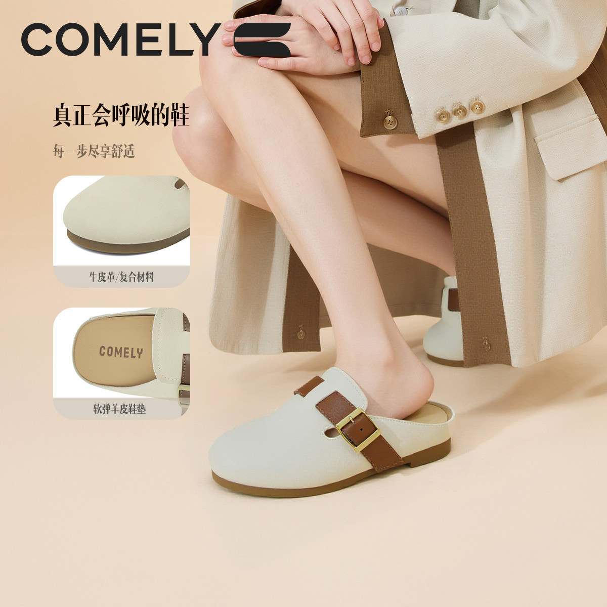 半拖鞋 包头鞋 女外穿2025新款 穆勒鞋 一脚蹬博肯 夏季 康莉真皮勃肯鞋