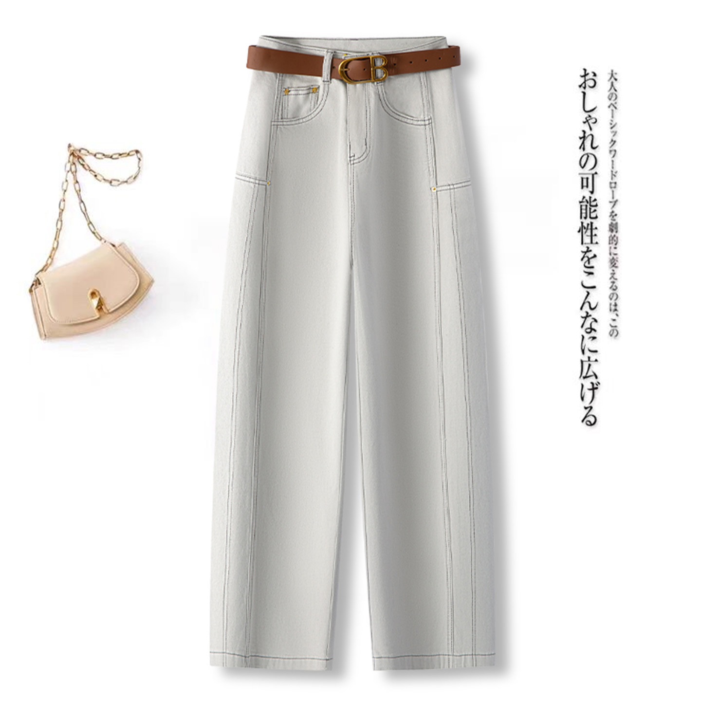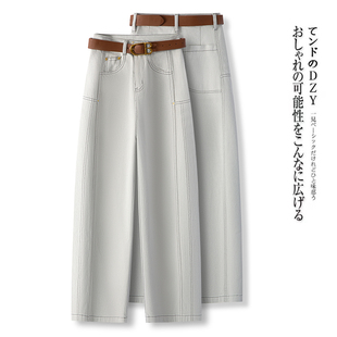 女2士025秋季 休闲裤 新款 气质高腰显瘦韩版 时尚 米白色弯刀软牛仔裤