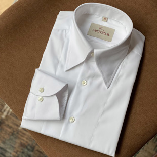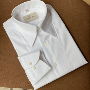 7085 衬衫 CM那不勒斯皇后全棉本白意式 尖字领双层门襟商务休闲男士