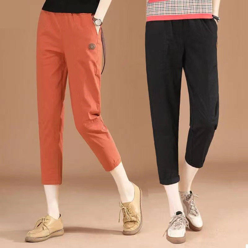 大码 女宽松运动小脚裤 休闲八分中裤 韩版 夏季 显瘦哈伦老爹裤 七分裤