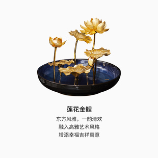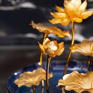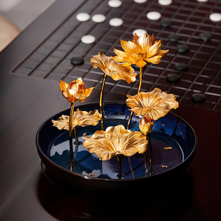 潮宏基蓝莲盆栽金箔摆件莲花莲叶高级感商务送礼纪念礼物礼品LX6