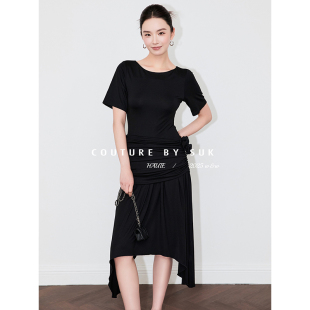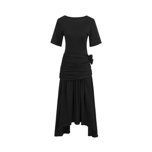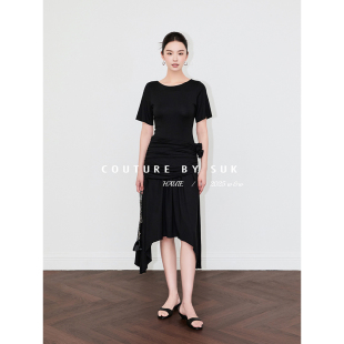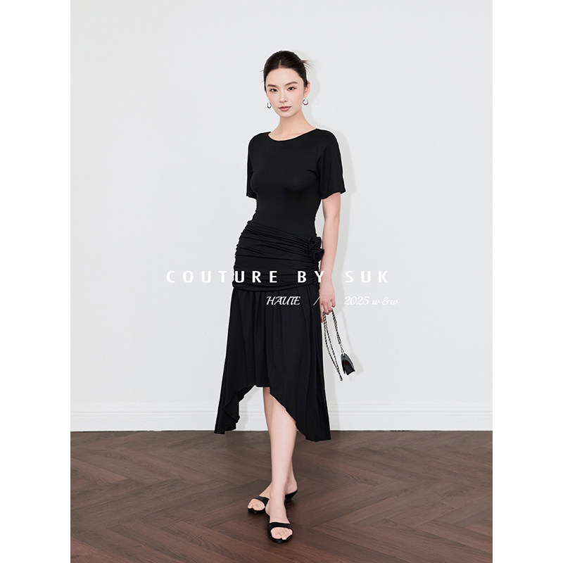 褶皱设计感针织短袖 优雅气质腰部围裹式 连衣裙女 气质加分 SUK