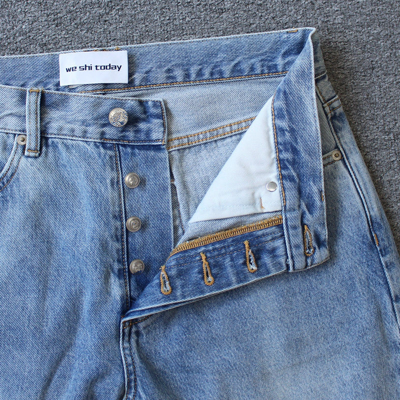 刺绣格子裥线宽松洗水渐变蓝直筒牛仔裤 FUNKYFUN 2025SS