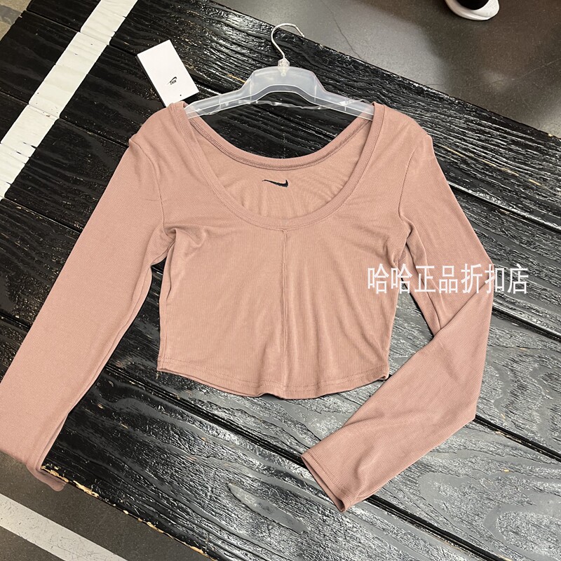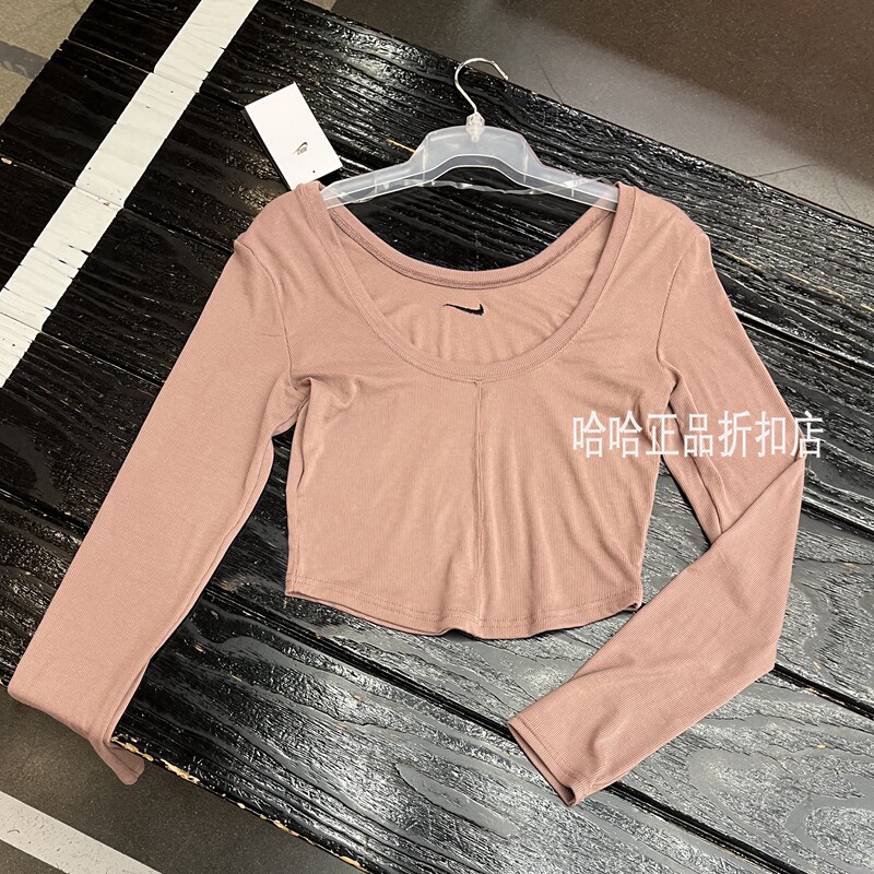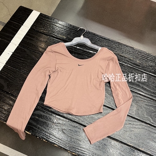 NIKE耐克女子大圆领低背运动训练健身休闲透气紧身长袖 T恤FN3662