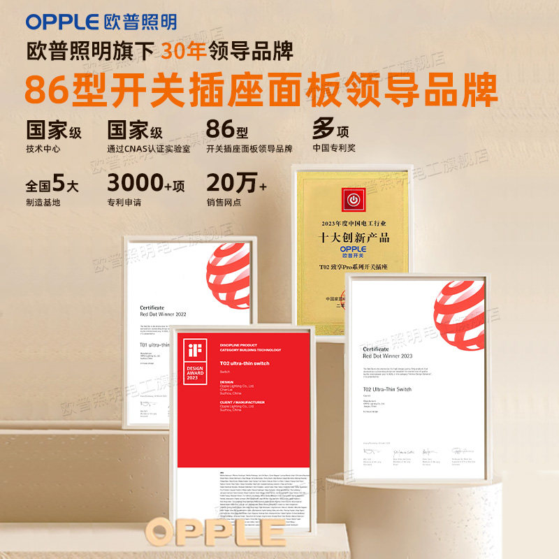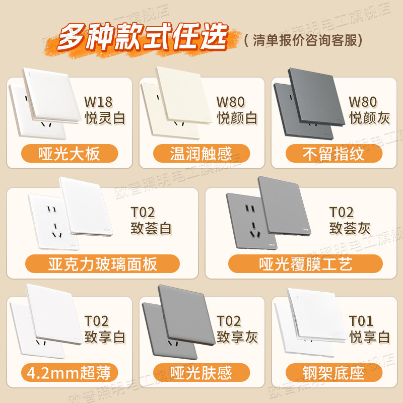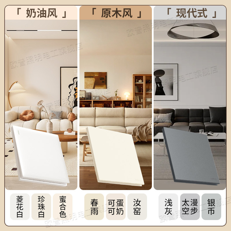 欧普超薄哑光开关插座面板奶油原木风五孔插座全屋套餐官方旗舰店