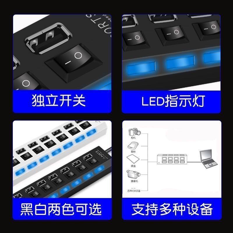 usb多头集线器笔记本台式 七分线器连接u盘扩展坞 电脑HUB一拖四