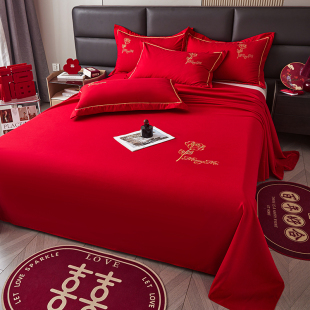 大红色结婚床单单件酒店一次性红床单三件套婚庆床罩女方男方被单