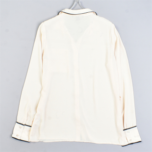 上衣 日常休闲通勤OL百搭长袖 621外贸条边撞色雪纺衬衫 女82184夏季