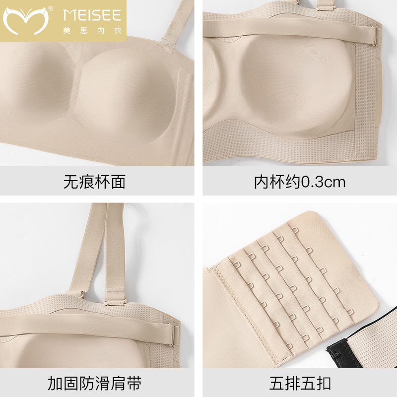 抹胸夏季 大码 无肩带内衣女大胸显小胖mm防下垂防滑全罩杯文胸薄款