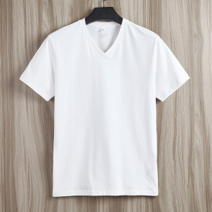 新款 上衣服半袖 纯棉短袖 V领运动健身内搭打底衫 体恤 白T恤男装 夏季