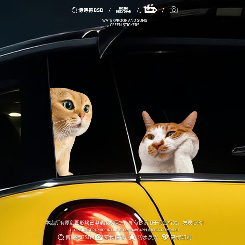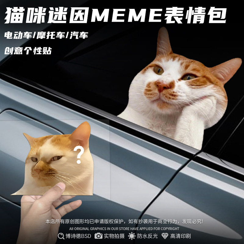 可爱搞笑迷因MEME猫猫咪惊讶表情包车贴猴子宠物电动车摩托装 饰贴