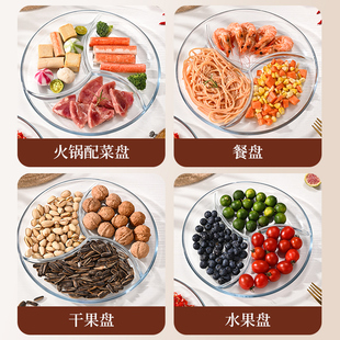陶瓷三格餐盘家用分餐火锅葱姜蒜配料分格分隔盘备菜盘水果盘配菜