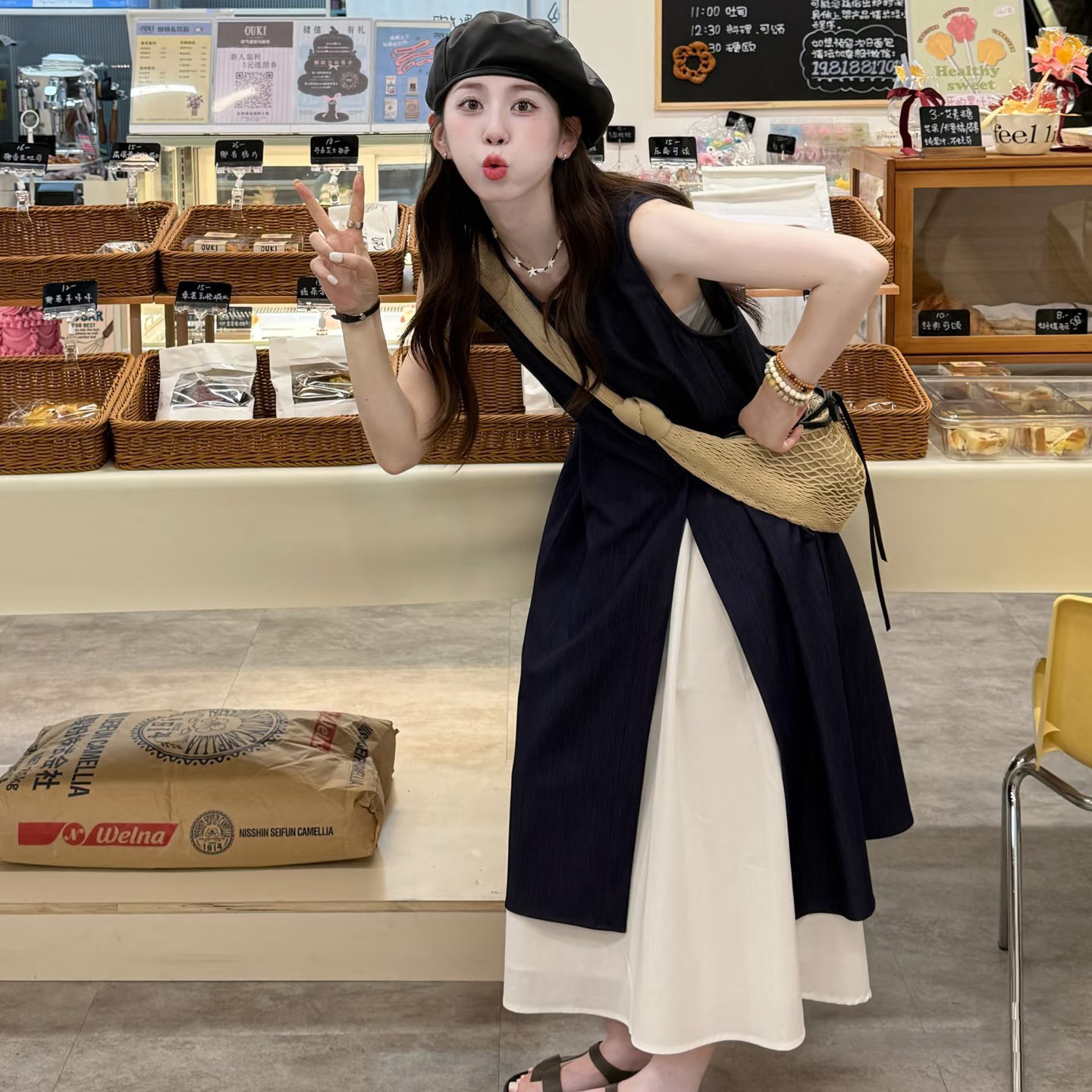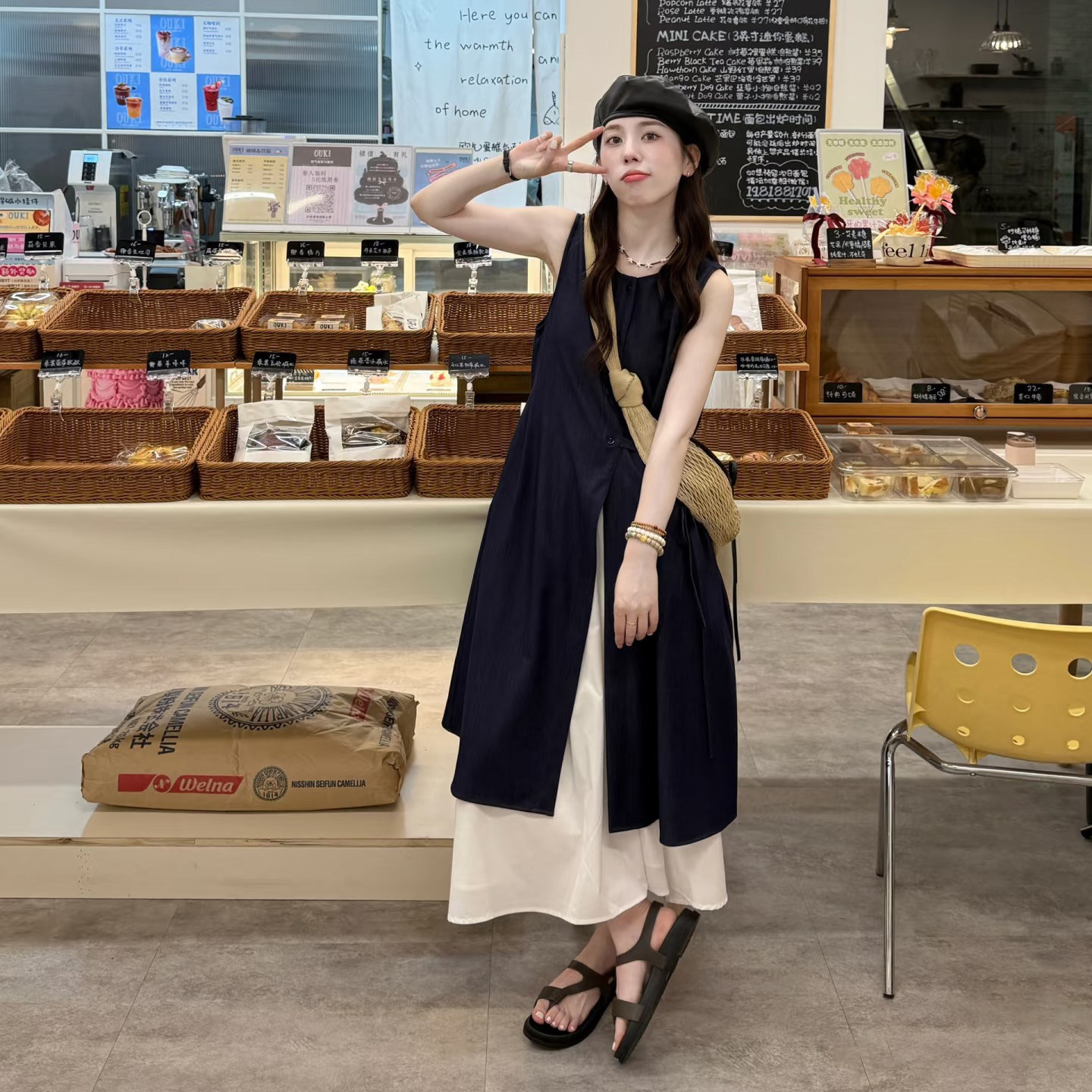 高级感免搭小个子显瘦套装 韩系无袖 新款 叠穿半身裙女夏季 背心罩衫