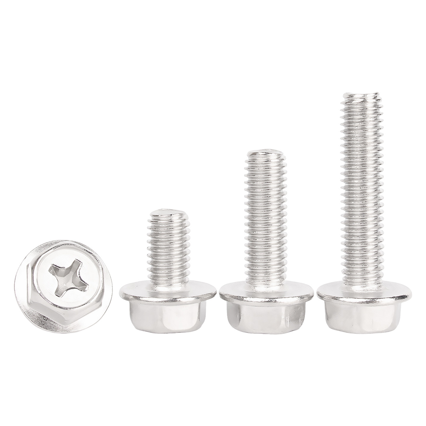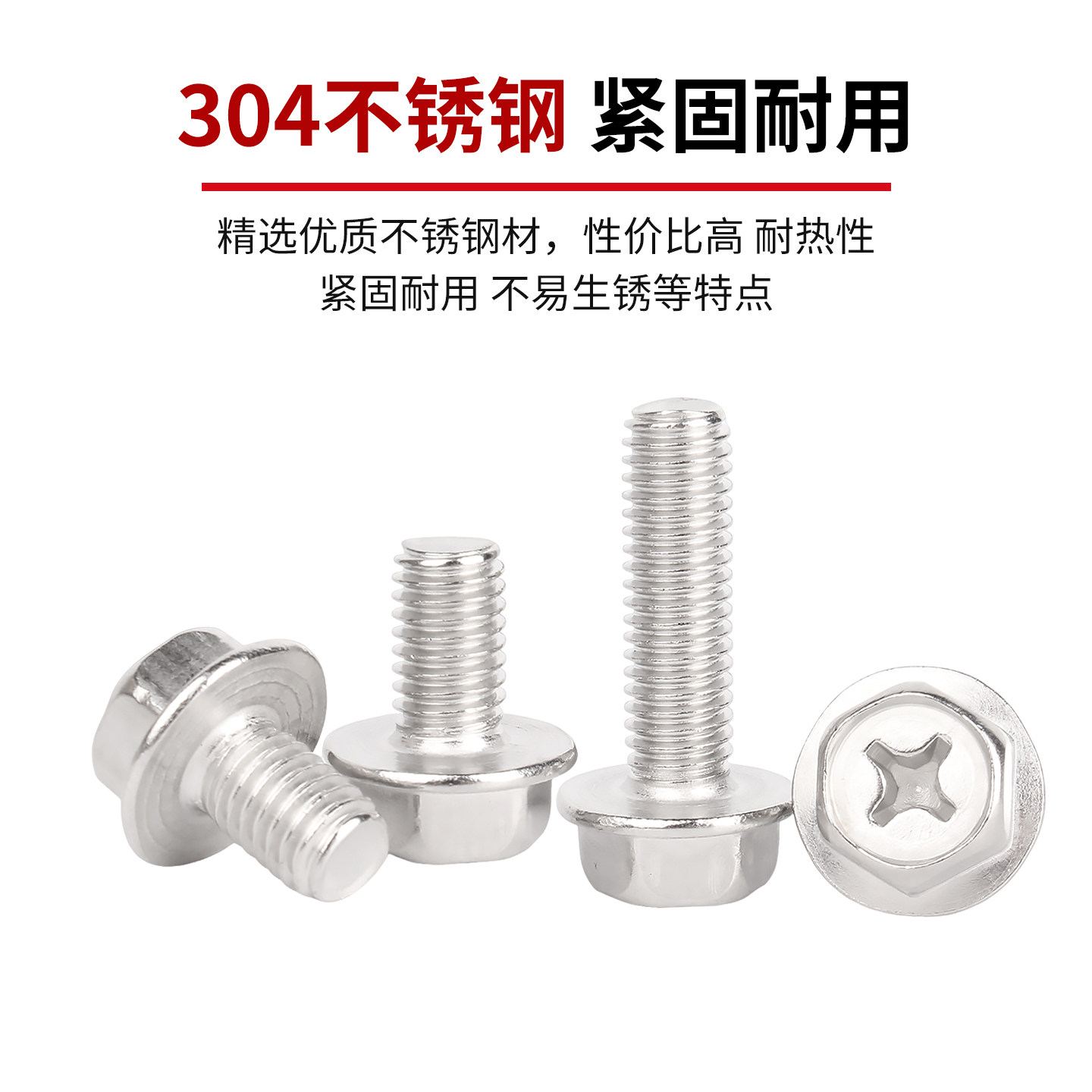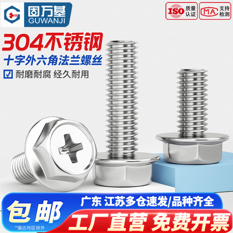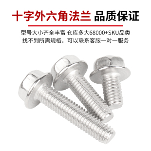 固万基304不锈钢十字法兰面螺丝外六角螺栓防滑带垫平底螺钉M3
