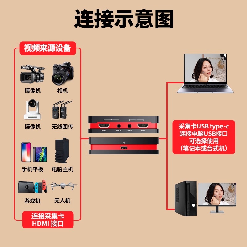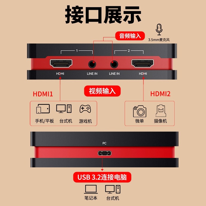 天创恒达TC switch直播盒 U8N2双路hdmi采集卡相机单反RGB游戏ps5