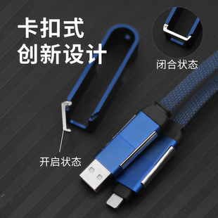 100W四合一挂绳短款 c适用华为快充苹果iphone16小米平板手机充电线充电宝专用开瓶器 便携PD数据线type