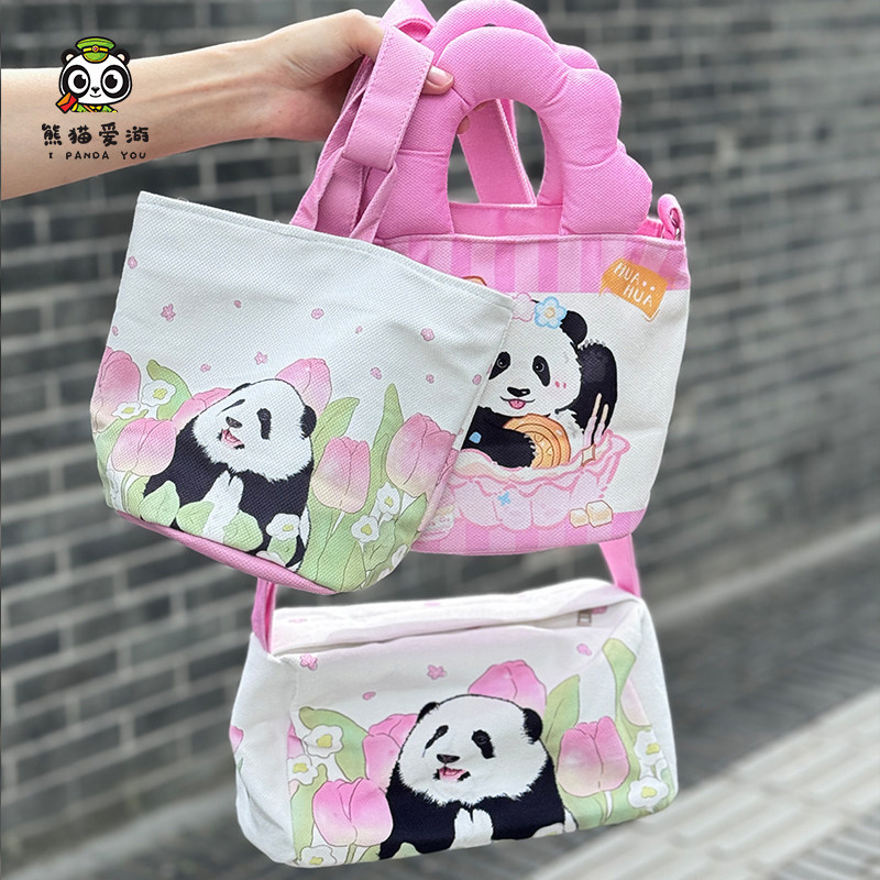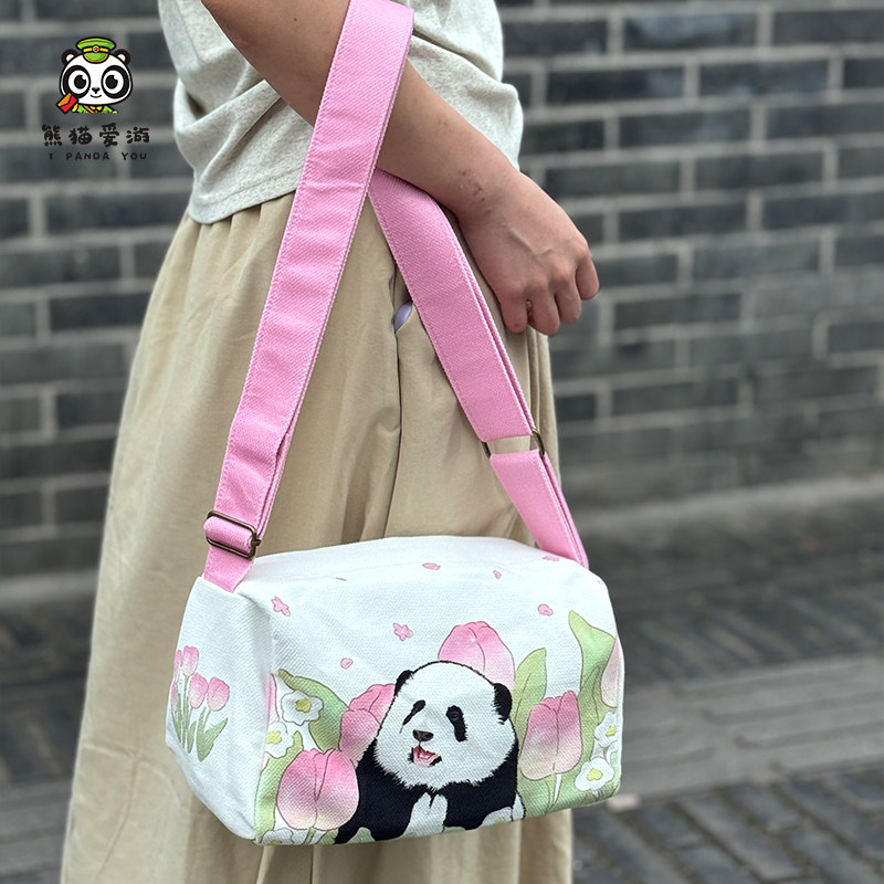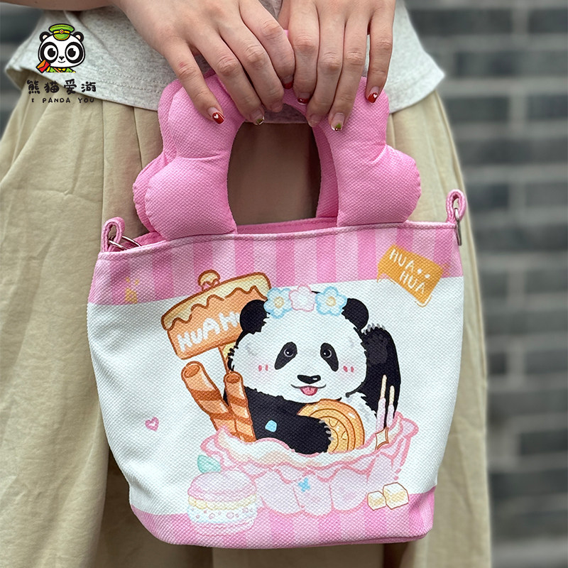 成都熊猫包花花水桶包斜挎包拎包手提包可爱粉色系列时尚 包纪念品
